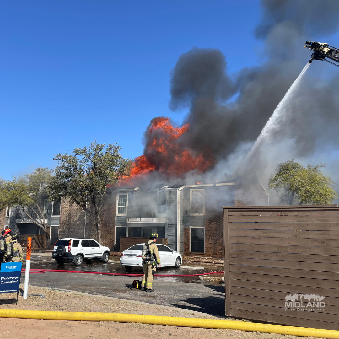 MIDLAND, TEXAS -- At approximately 10:27 a.m. on Wednesday (April 9, 2025), Midland Fire Department firefighters responded to an apartment fire in the 4700 block of Polo Parkway in north Midland.